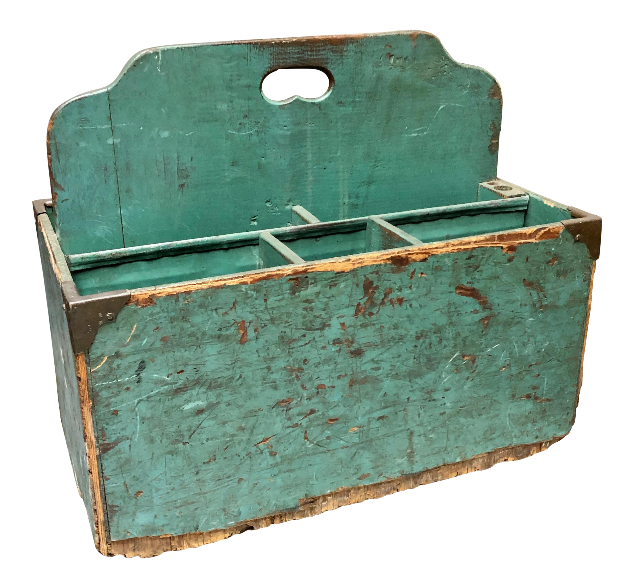 1940s Vintage Teal Hand Painted Wood Crafted Tool And Art Supplies